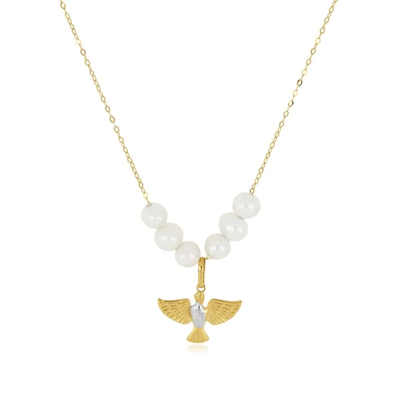 Colar Divino Espírito Santo de Ouro Amarelo 18k com Pérolas