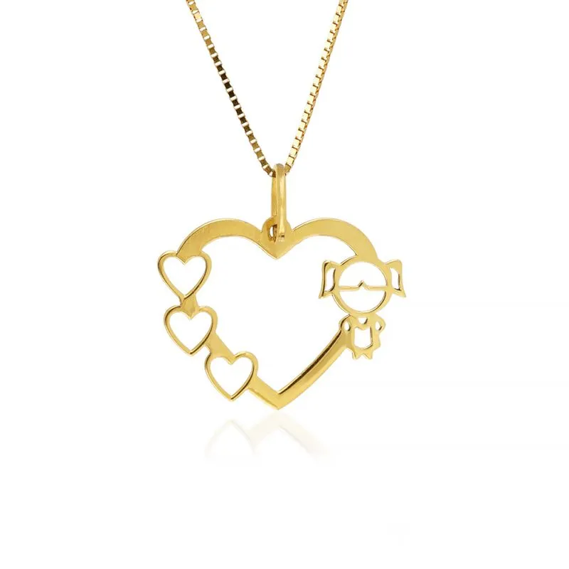 Pingente 3 Corações Menina de Ouro Amarelo 18k