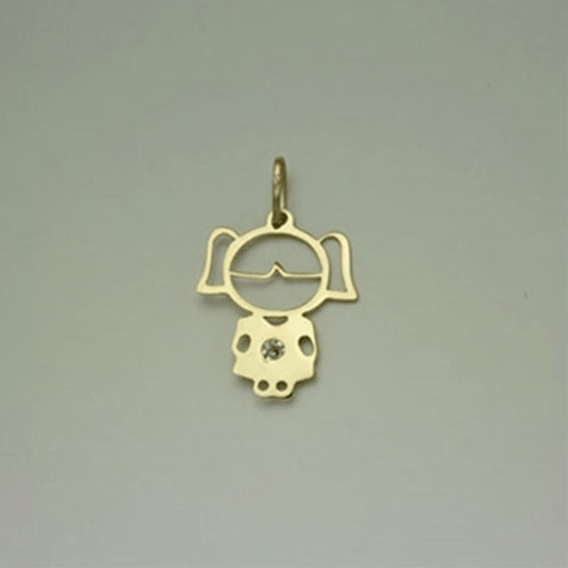 Pingente menina de Ouro amarelo 18k com zircônia.