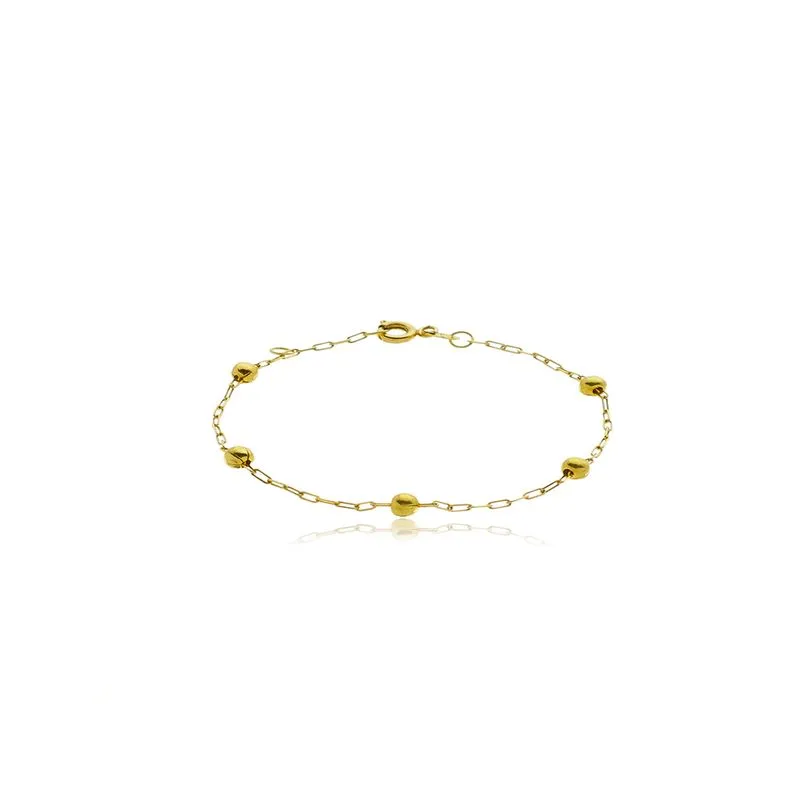 Deixe sua filha brilhar com a elegante Pulseira de Bolinha Infantil de Ouro amarelo 18k com corrente cartier e 5 bolinhas da América Joias,é uma peça de qualidade incomparável que traz alegria e diversão para a infância. Presenteie sua princesa com uma joia que será lembrada por toda a vida.