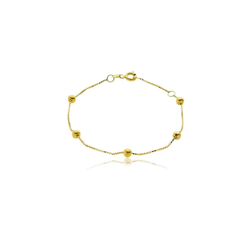 Pulseira Infantil de Ouro Amarelo 18k Veneziana com Bolinhas