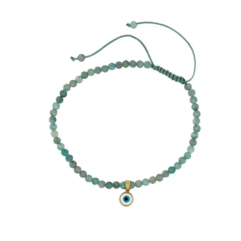 Pulseira Shambala Olho Grego de Ouro Amarelo 18k e Amazonita